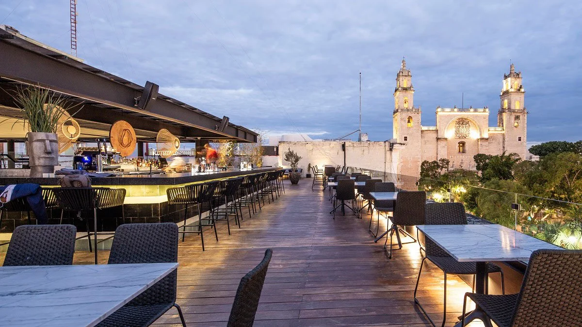 Modern Mexican. Situated right at the base of Paseo Montejo. The roof deck has great views.